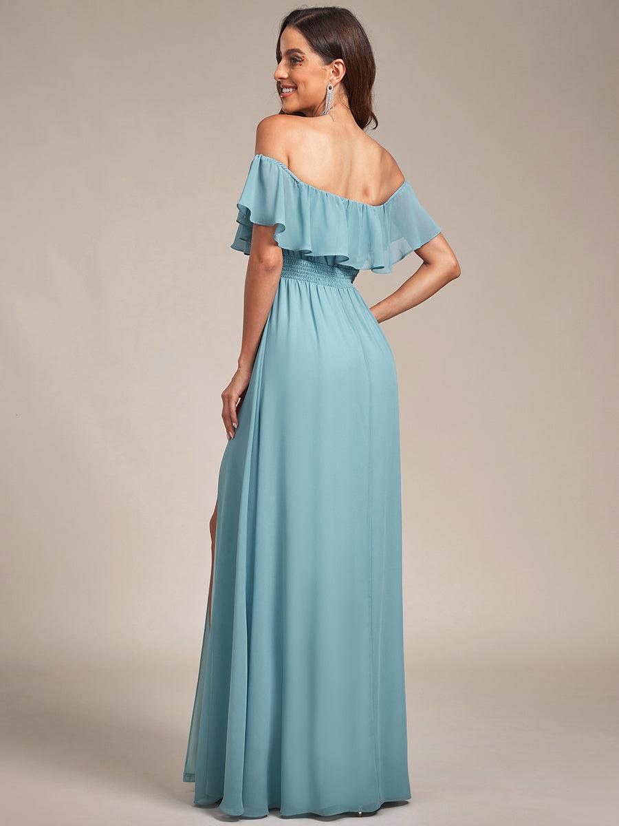 Robe de demoiselle d'honneur en mousseline à épaules dénudées et fente haute