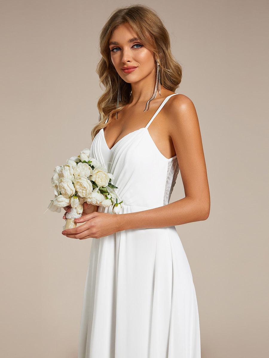 Robe demoiselle d'honneur mousseline et dentelle dos nu bretelles fines #Couleur_Blanc