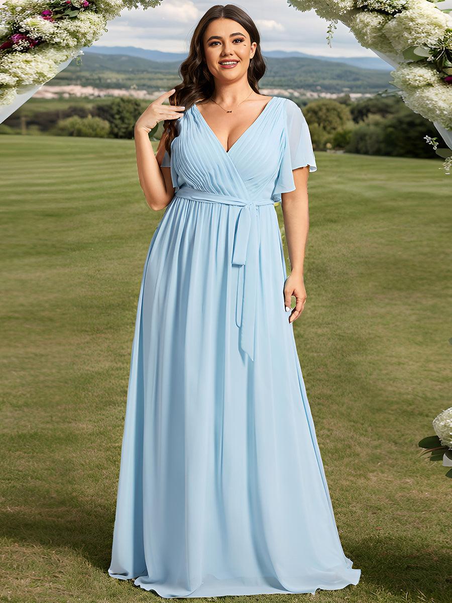 Robe de demoiselle d'honneur en mousseline de soie longue de grande taille à encolureen V Maxi