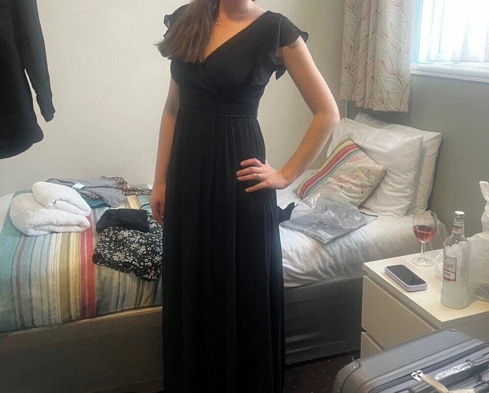Ajoutez une touche de raffinement à votre garde-robe avec cette robe de soirée en mousseline à manches volantées. Légère et fluide, elle offre un confort optimal tout en sublimant votre silhouette. Les manches volantées apportent une élégance romantique, idéale pour des mariages, galas ou événements formels.