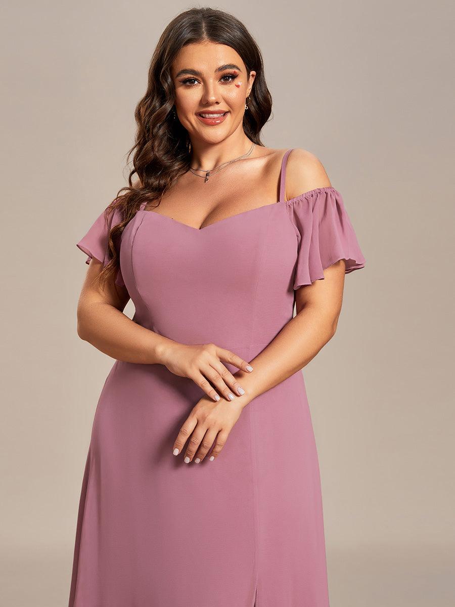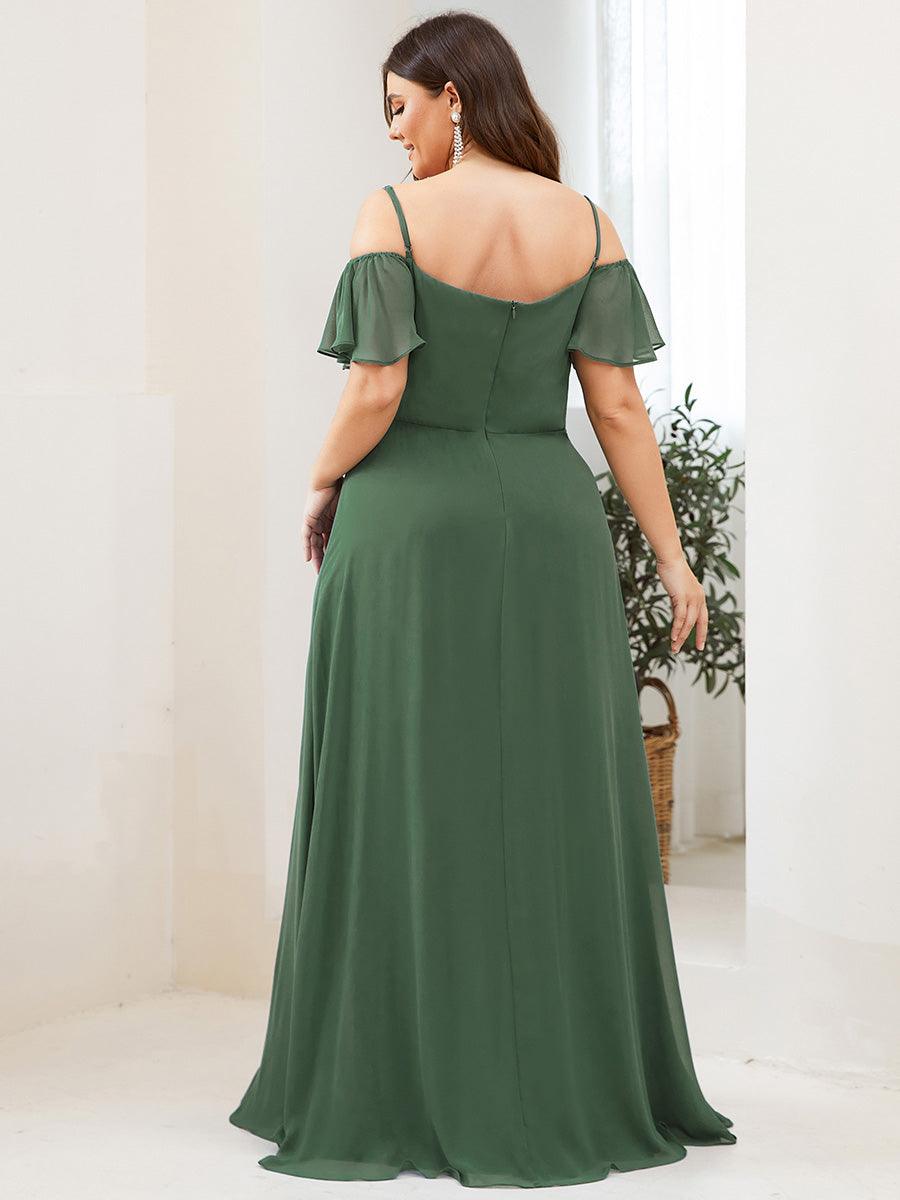 Cette superbe et élégante robe de demoiselle d'honneur pour les femmes vous rendra srement incroyable, qui a un col en V profond, des manches courtes évasées et une silhouette trapèze. C'est une robe longue au sol qui a un design fendu qui aide à montrer des jambes sexy. Les bretelles minces et les épaules froides sont également ravissantes.