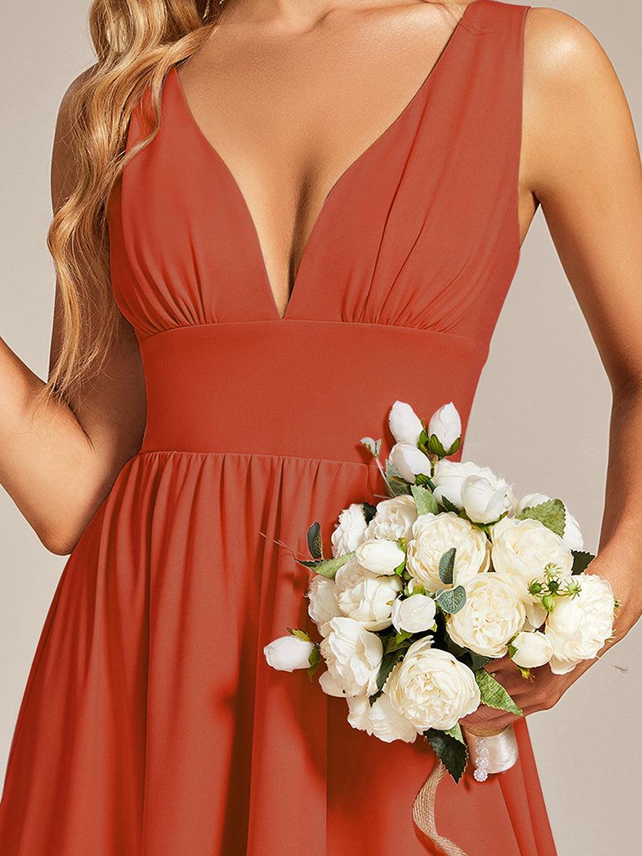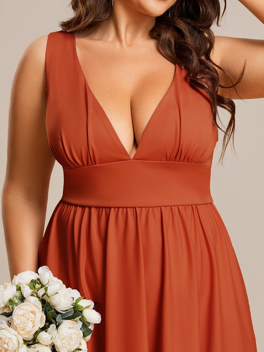 Honorez votre style unique avec cette magnifique robe de soirée sans manches à col en V. Une large taille cintrée et des plis cèdent la place à une silhouette fluide jusqu'au sol, offrant l'équilibre parfait entre sophistication classique et capacité de port intemporelle, juste ce qu'il faut pour votre prochain moment spécial.