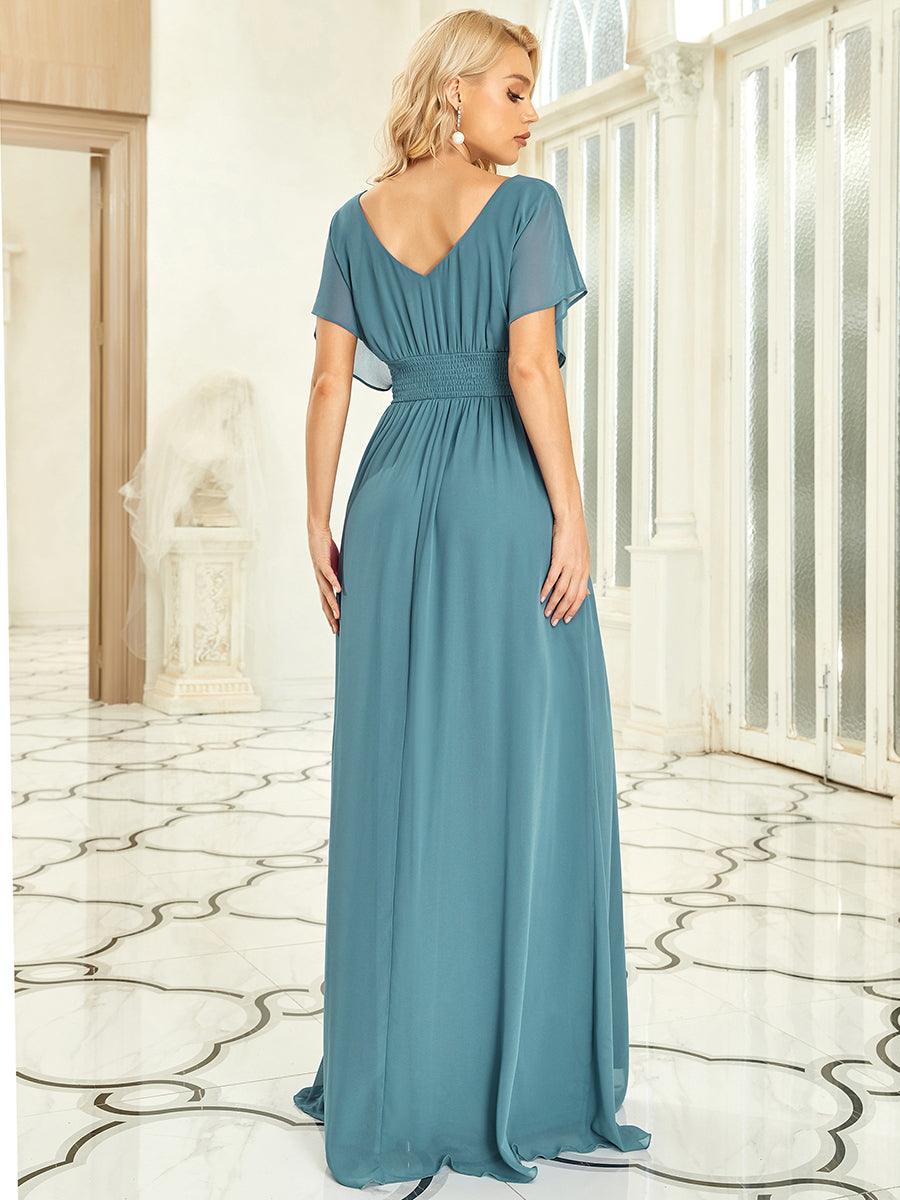 Dotée d'un double décolleté en V, d'une jupe fluide et de manches à volants, cette élégante robe de soirée est un choix parfait pour les mariages, la soirée, le cocktail, le bal, le gala, le baptême,la rentrée à l'école, la remise des diplômes et toute autre affaire formelle!