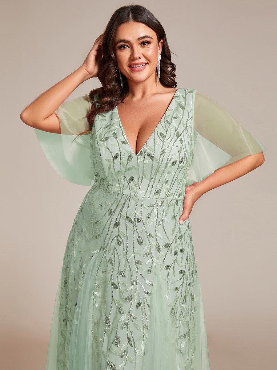 Cette robe de soirée présente un double décolleté en V profond et des manches à volants. Le motif de feuilles chatoyantes donne une ambiance romantique. Elle est parfaite pour les mariages, la soirée, le cocktail, le bal, le gala, le baptême,la rentrée à l'école, la remise des dipl?mes et toute autre affaire formelle!