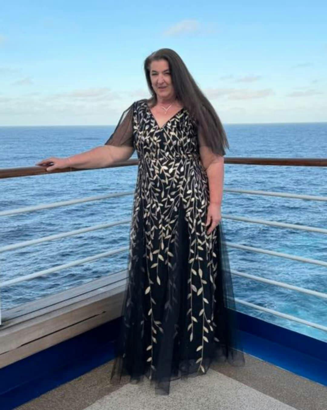 Robe de Soirée Longue Romantique et Scintillante à Col V et Pailletes