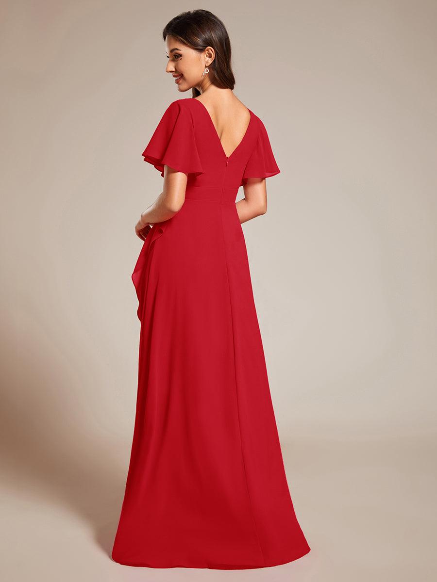 Faites une déclaration lors de votre prochain événement de mariage avec cette superbe robe de demoiselle d'honneur en mousseline de soie avec un ourlet délicat en feuille de lotus. Le matériau fluide et léger vous permettra de vous sentir à l'aise et élégante toute la journée et toute la nuit. Le col en V et les manches à volants ajoutent une touche de féminité, tandis que la taille ajustée accentue vos courbes aux bons endroits. Cette robe est parfaite pour toutes les saisons et peut être habillée vers le haut ou vers le bas avec les bons accessoires. Ne manquez pas cette pièce incontournable pour votre garde-robe de demoiselle d'honneur !