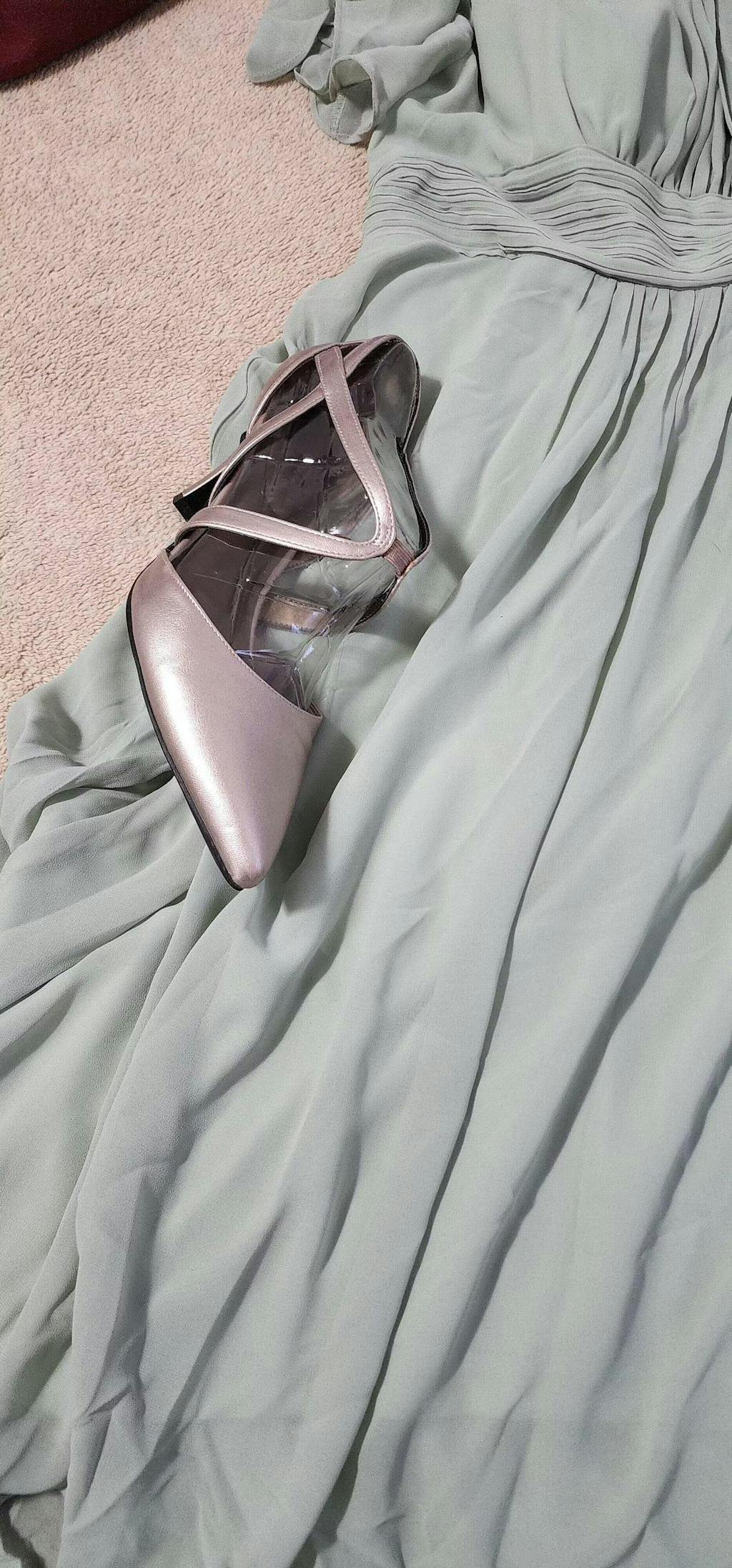 Robe d'invité de mariage trapèze en mousseline fluide à encolure ronde et longueur au genou #Couleur_Vert sauge
