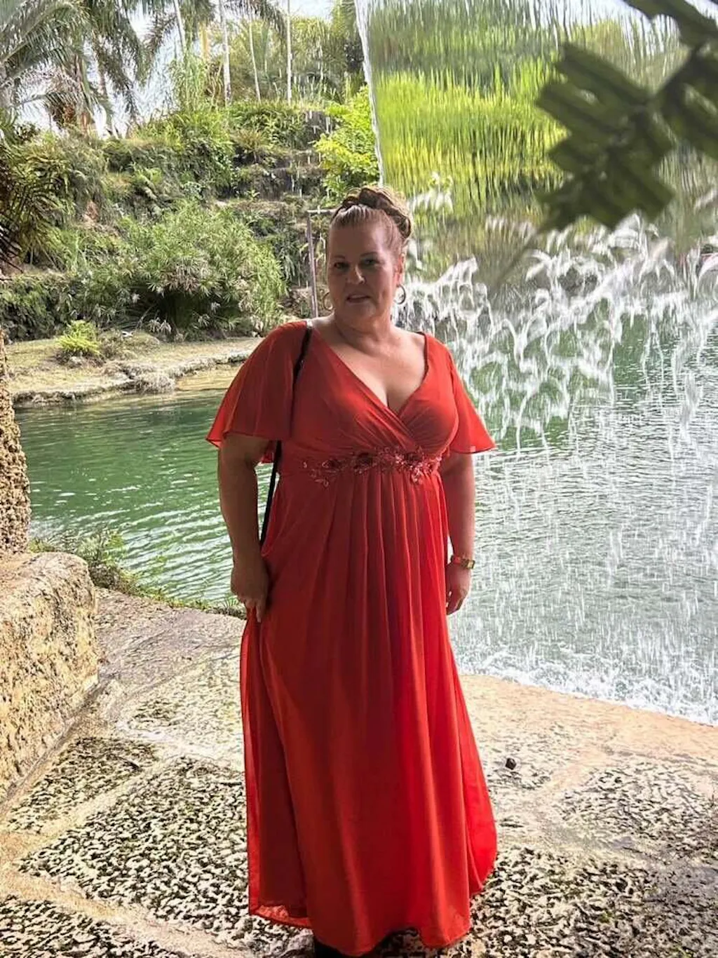 Robe de soirée élégante en mousseline de soie avec manches flottantes#Couleur_Burnt Orange