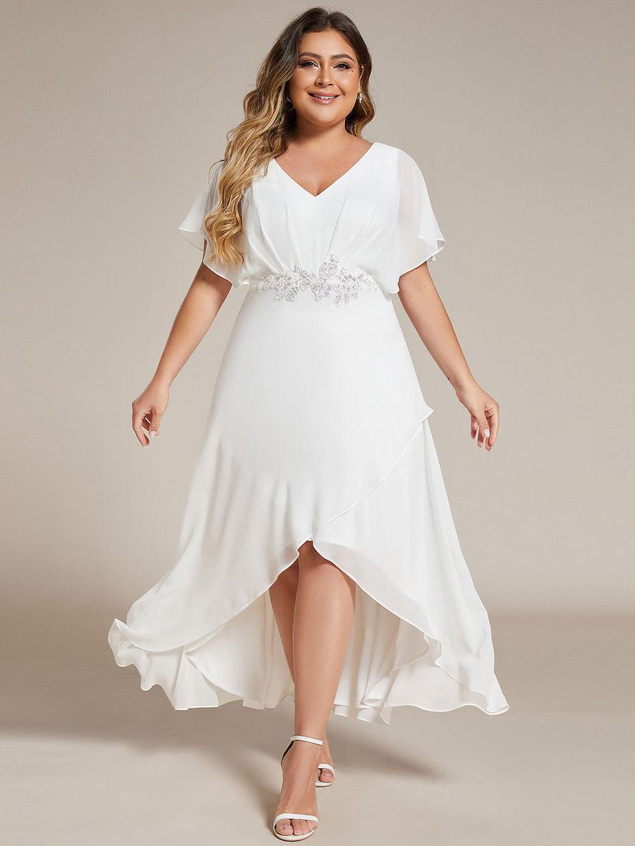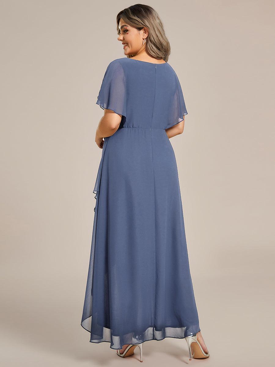Adoptez l'élégance intemporelle avec notre élégante robe formelle à manches courtes et taille trapèze avec ourlet en feuille de lotus. Les délicats détails appliqués rehaussent le charme des manches courtes et de la taille trapèze, créant une silhouette gracieuse. L'ourlet en feuille de lotus ajoute une touche de fantaisie à cette robe formelle, ce qui en fait un choix exquis pour les occasions spéciales.
