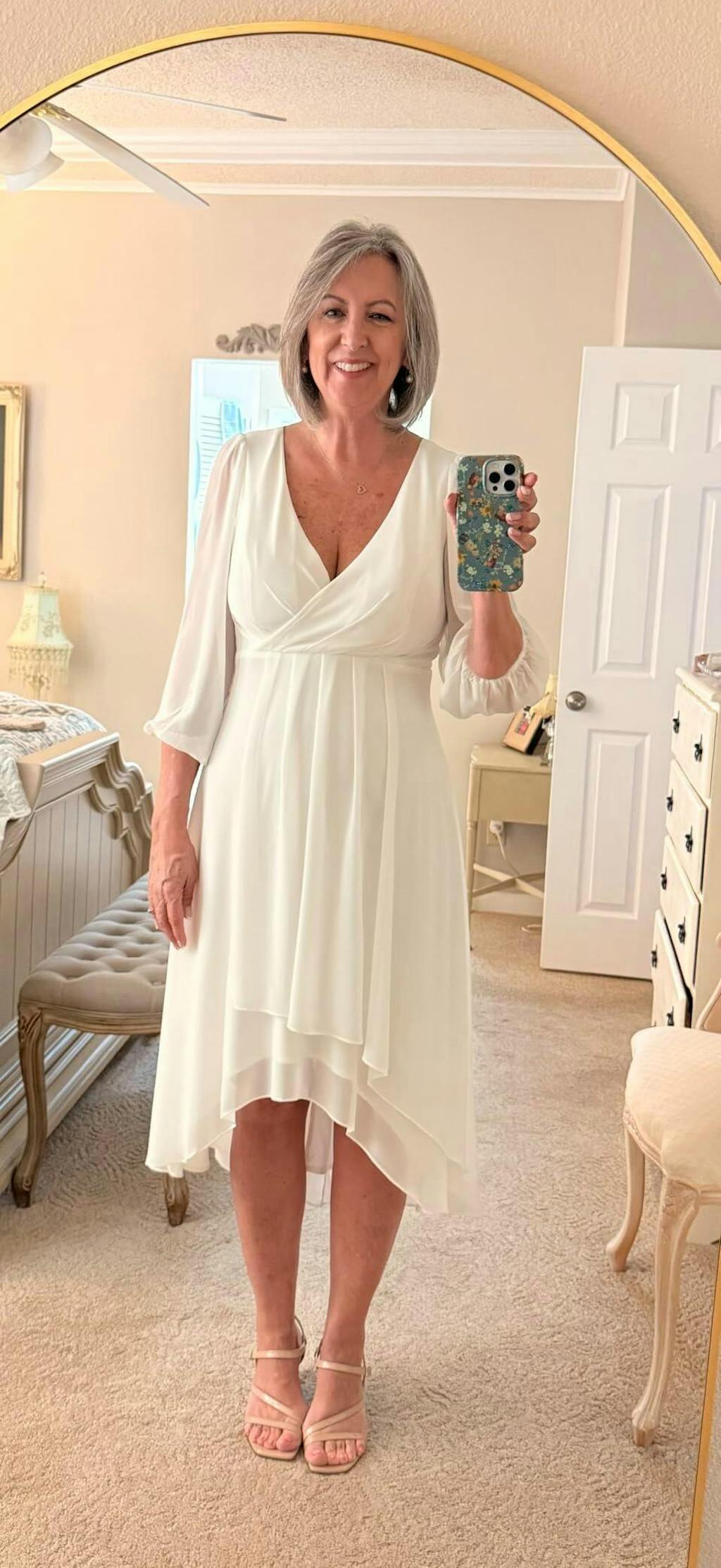 Robe invité de mariage mi-longue manches longues ourlet asymétrique #Couleur_Blanc