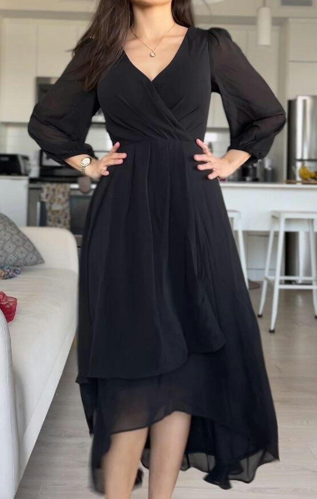Robes de demoiselle d'honneur à manches longues et ourlet asymétrique #Couleur_Noir