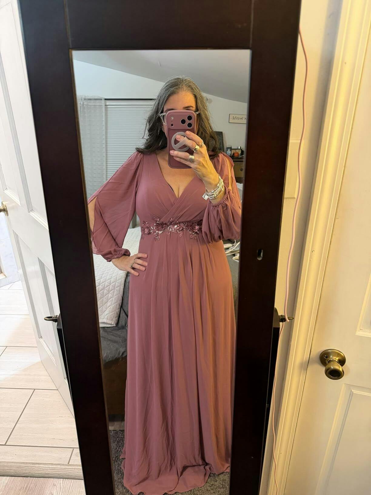 Il est temps de ressembler à une princesse en portant cette magnifique robe. Cette robe présente un col en V profond et de longues manches évêque. Il existe également une conception d'appliques près de la taille qui aide à accentuer la taille. Cette robe de soirée est uniquement conçue pour les femmes de taille plus afin qu'elles puissent se sentir belles. Nous pensons que cette magnifique robe est parfaite pour toutes les occasions formelles, qu'il s'agisse d'une soirée, d'un cocktail, d'un mariage ou d'un bal de finissants, de la rentrée et de la remise des diplômes!
